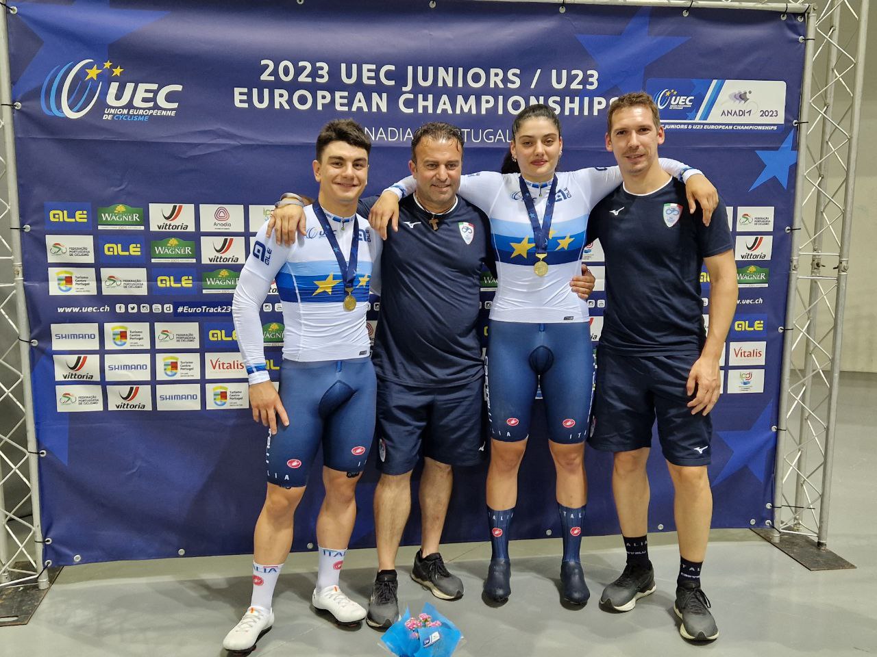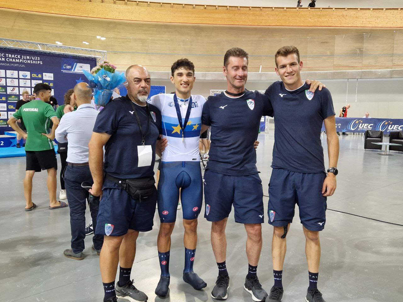 | L’inno di Mameli risuona ancora tra le mura del Velodromo National Sangalhos, sede degli Europei pista riservati a Juniores e Under 23. Non una, non due, ma ben tre volte nella giornata di oggi, tanto che ormai anche i riders delle altre nazioni sul podio ne canticchiano sottovoce le parole. L’Italia c’è e si fa notare, aggiungendo al già copioso palmarés di questa rassegna continentale altre 3 medaglie d’oro, con ancora una giornata di gare da vivere: sul gradino più alto del podio stavolta salgono nell’ordine Juan David Sierra, Mattia Predomo e Beatrice Bertolini, mantenendo stabile il gruppo azzurro in testa al medagliere a quota 20 medaglie, di cui 12 d’oro. Mattia Predomo continua la sua personale scalata verso i vertici assoluti della velocità maschile. Dopo aver dominato, nel 2022, la stagione internazionale tra gli juniores, il talento di Bolzano ha affrontato il salto di categoria con la determinazione che rappresenta la sua cifra distintiva. Qui ad Anadia ha dominato, con apparente irrisoria facilità, il torneo della velocità che proponeva avversari ben più rodati di lui. In finale nello Sprint U23 si è sbarazzato dell’olandese van Loon in quello che tutto il ciclismo italiano si augura possa rappresentare anche un emblematico passaggio di consegne tra la formidabile scuola orange e il nostro movimento. “E’ stata una vittoria cercatissima” spiega l’azzurro, che non riesce a togliersi il sorriso dalle labbra. E aggiunge: “E’ tutta la stagione che stiamo lavorando per un grande risultato nella velocità. Dopo il record italiano ho avuto una fase un po’ calante, ma tornare qui ad Anadia e vincere per me è una grande emozione. Non me lo aspettavo, ma la fiducia in me stesso era molto alta nonostante la mia gamba non fosse proprio al top. La mia gran voglia di correre ha avuto la meglio”. |