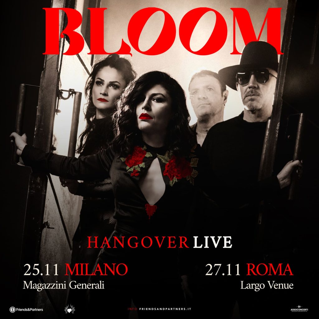 A novembre BLOOM, la super band alternative rock formata da GIUSY FERRERI, MAX ZANOTTI, ROBERTA RASCHELLÀ e ALESSANDRO DUCOLI, presenterà dal vivo i brani contenuti nel primo album di inediti “HANGOVER” con HANGOVER LIVE, due speciali appuntamenti prodotti e organizzati da Friends&Partners: il 25 novembre ai Magazzini Generali di MILANO e il 27 novembre al Largo Venue di ROMA.
