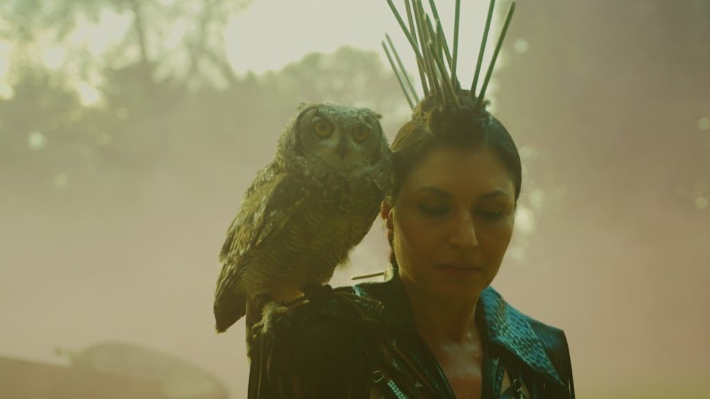 Il video, girato presso l’Azienda Agricola “Il Ramo Delle Streghe” a Vigevano(Pavia) per la regia di VONJAKO, si apre con una panoramica su un luogo incontaminato, immerso in un’aura mistica, rimarcata dalla presenza di tre civette e un corvo (addestrati da Regno dei Rapaci e i Falconieri di sua Maestà). In questo scenario naturale avvolto da un senso di armonia primordiale, Matteo Seven Dal Prà e Arianna Chiocchetti danzano in modo fluido e ipnotico. Ogni passo, ogni gesto evoca una narrazione che, attraverso la combinazione di mitologia e simbolismo, porta a una connessione tra l’uomo e l’ambiente che lo circonda. Giusy Ferreri in questo videoclip rappresenta Minerva, la Dea della saggezza, della giustizia e delle arti in una versione fantasy post-apocalittica, una scelta che simboleggia la speranza e la rigenerazione della civiltà attraverso la conoscenza e l’arte. La civetta è simbolo di saggezza e filosofia, mentre il corvo, messaggero degli dei, aggiunge un elemento di mistero e preveggenza, rappresentando la comunicazione tra il divino e il terreno o tra passato e futuro.