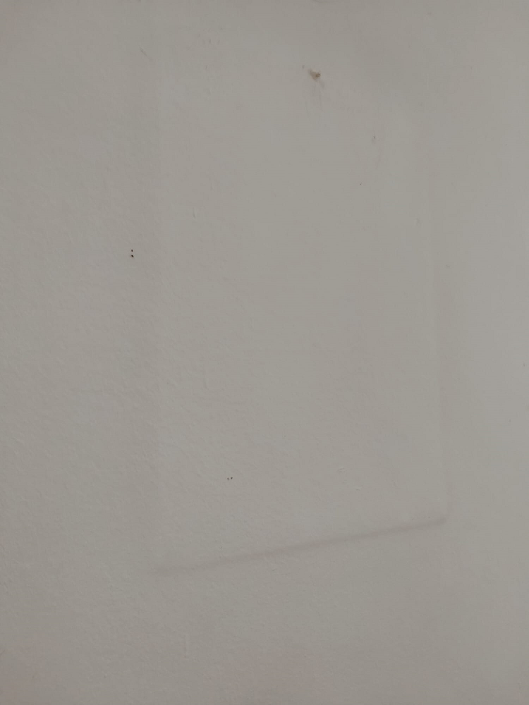 • La superficie della carta da parati, così come quella delle pareti dipinte, tende ad accumulare polvere, sporco, fumo (se presente) e altre particelle aeree nel corso del tempo. Il quadro funge da scudo, impedendo a queste particelle di depositarsi uniformemente sulla parte di carta da parati che copre. Di conseguenza, l’area dietro il quadro rimane più pulita e meno ingiallita/scurita rispetto al resto della parete, che appare più “sporca” o opacizzata.