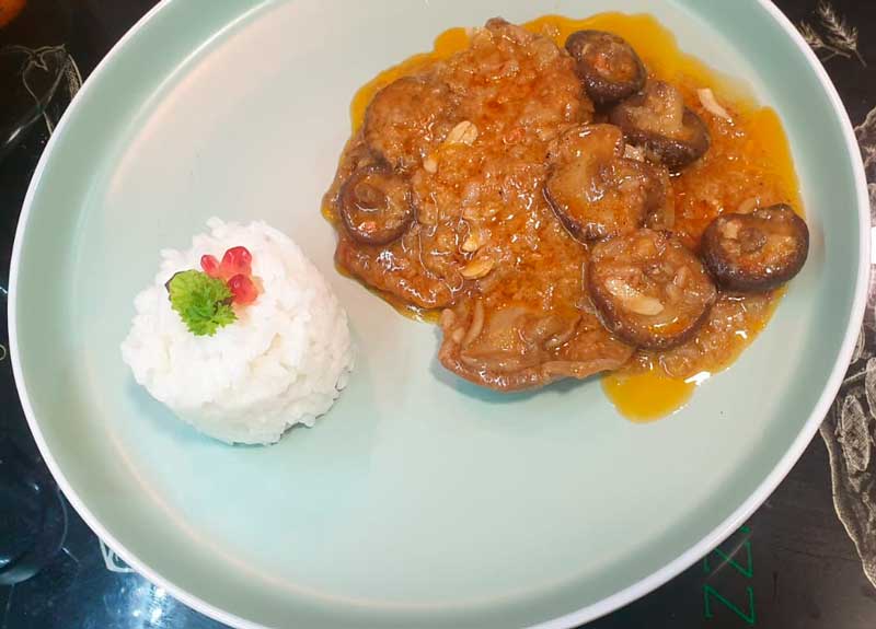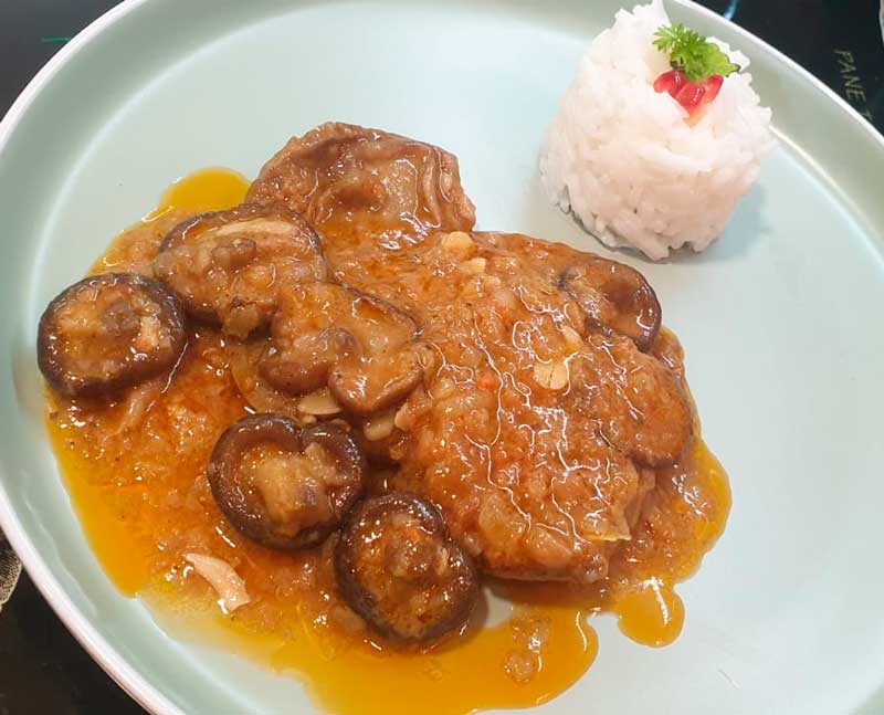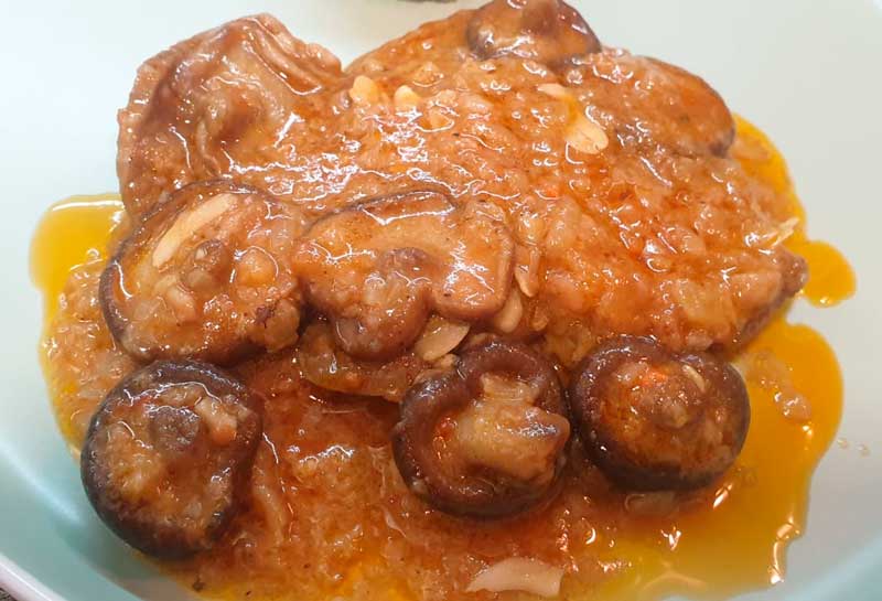 20 min prima di mettere i funghi e il trito, mettiamo l’aglio, tostiamo il prezzemolo e mescoliamo con le mandorle, lasciamo cuocere ancora 20 minuti e il gioco è fatto.