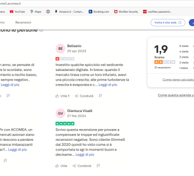 Dopo svariate verifiche sulla società Acome "Gimme 5" sono davvero tante le lamentele di un servizio di investimenti che dovrebbe