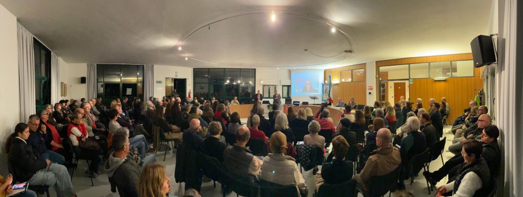 Aula gremita, con quasi 200 persone, all’incontro pubblico sul tragico sequestro e uccisione di Cristina Mazzotti, venerdì 18 ottobre – nella sala consiliare di Eupilio.