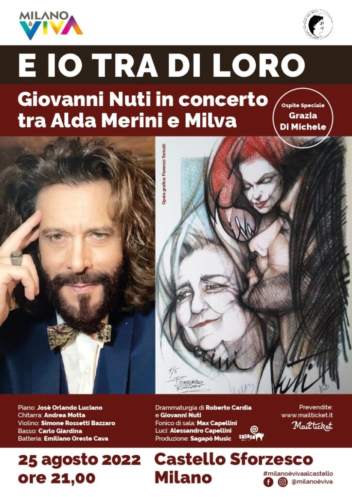 Giovedì 25 agosto alle ore 21:00 presso il Castello Sforzesco di Milano si terrà il concerto di GIOVANNI NUTI “E io tra di loro – Giovanni Nuti in concerto – tra Alda Merini e Milva”, nell’ambito della rassegna “Milano è Viva”, promossa dall’amministrazione comunale.