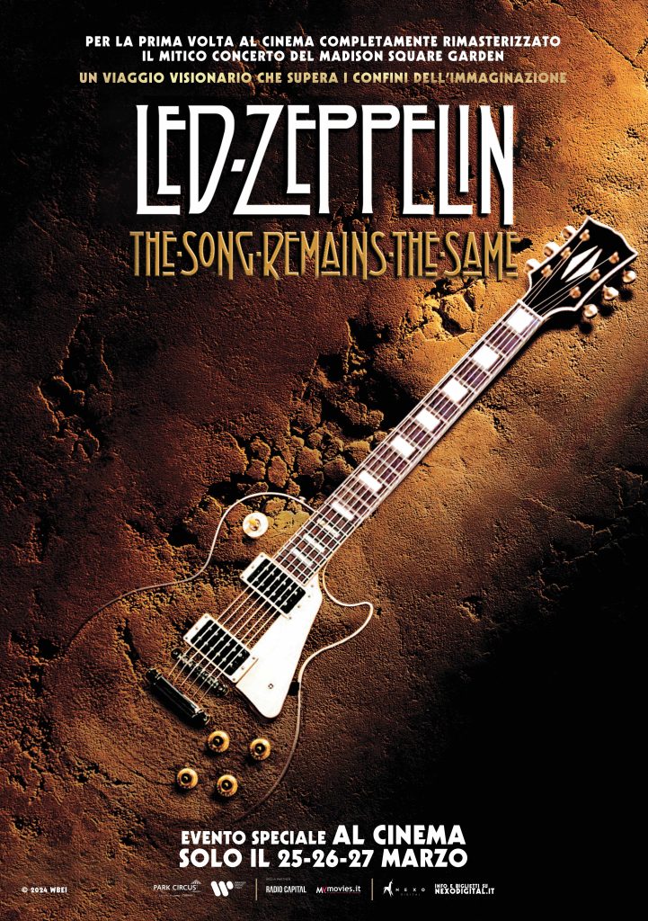 Arriva per la prima volta nelle sale, solo il 25, 26, 27 marzo come evento speciale, LED ZEPPELIN: THE SONG REMAINS THE SAME il rivoluzionario e ipnotico film-concerto che raccoglie le riprese delle elettrizzanti esibizioni dei Led Zeppelin al Madison Square Garden di New York nel 1973. L’elenco delle sale che programmeranno l’evento sarà presto disponibile su nexodigital.it e le prevendite apriranno a partire dal 27 febbraio.