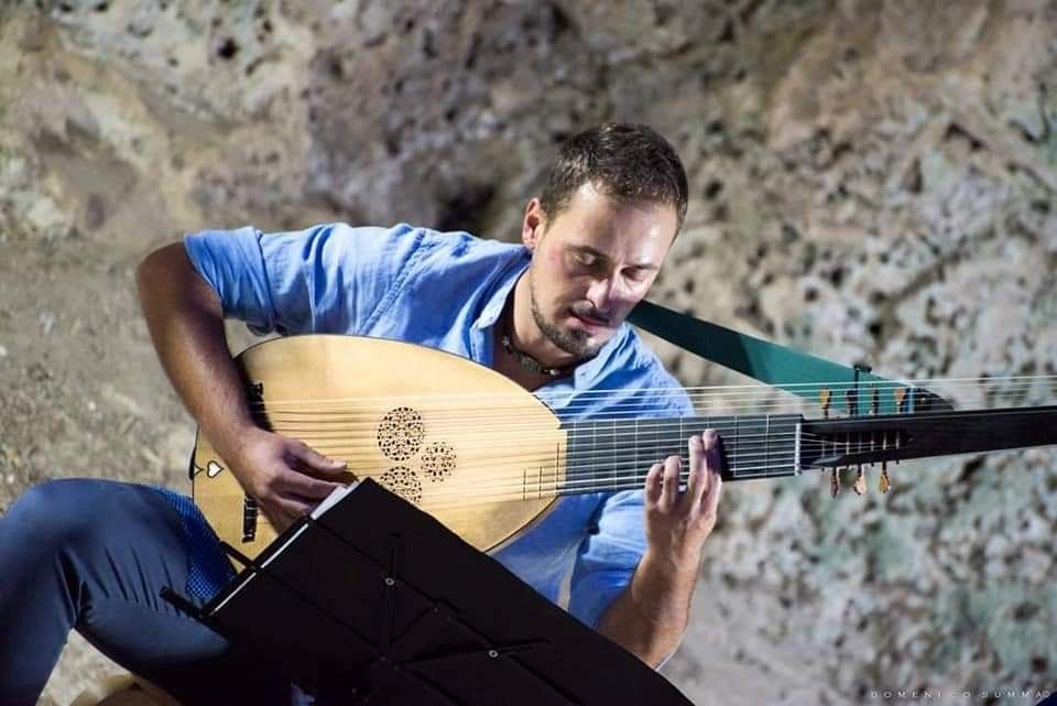 Giuseppe Copia, polistrumentista raffinato, è specializzato in musica barocca e rinascimentale, con particolare attenzione a strumenti come la tiorba e la chitarra battente, che danno corpo e calore a sonorità antiche e profonde.