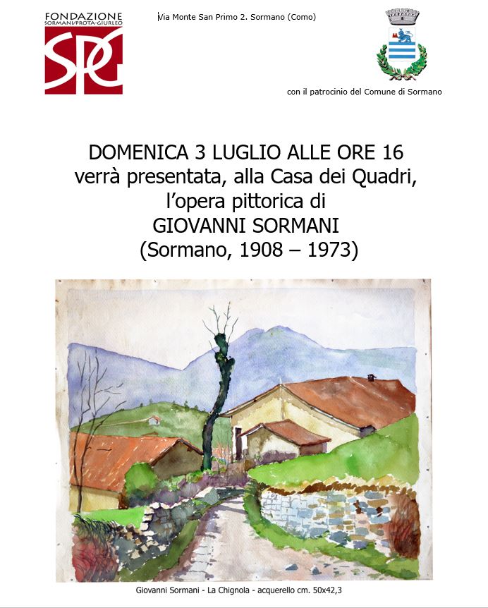 L’incontro si svolgerà alla Casa dei quadri, sede della Fondazione Sormani Prota – Giurleo, DOMENICA 3 LUGLIO alle ore 16.