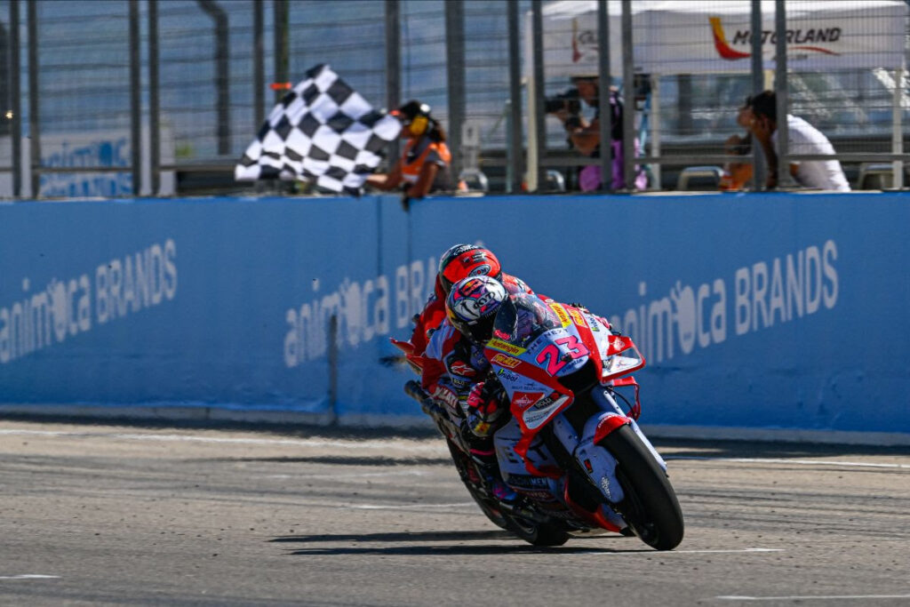 Brutte notizie per un pilota Ducati, quindi, ma la futura coppia ufficiale del marchio bolognese stava per combattere per la prima posizione, proprio come avevano fatto due settimane prima a Misano. Bastianini ha fatto la mossa alla curva 1 al 9° giro e sembrava che il pilota Gresini potesse essere in grado di staccare, visto il vantaggio di passo che sembrava avere su Pecco. Invece, ha frenato mezzo giro dopo alla curva 12 ed è andato molto in profondità, restituendo il comando a Bagnaia e tenendo a malapena Binder attraverso la chicane.