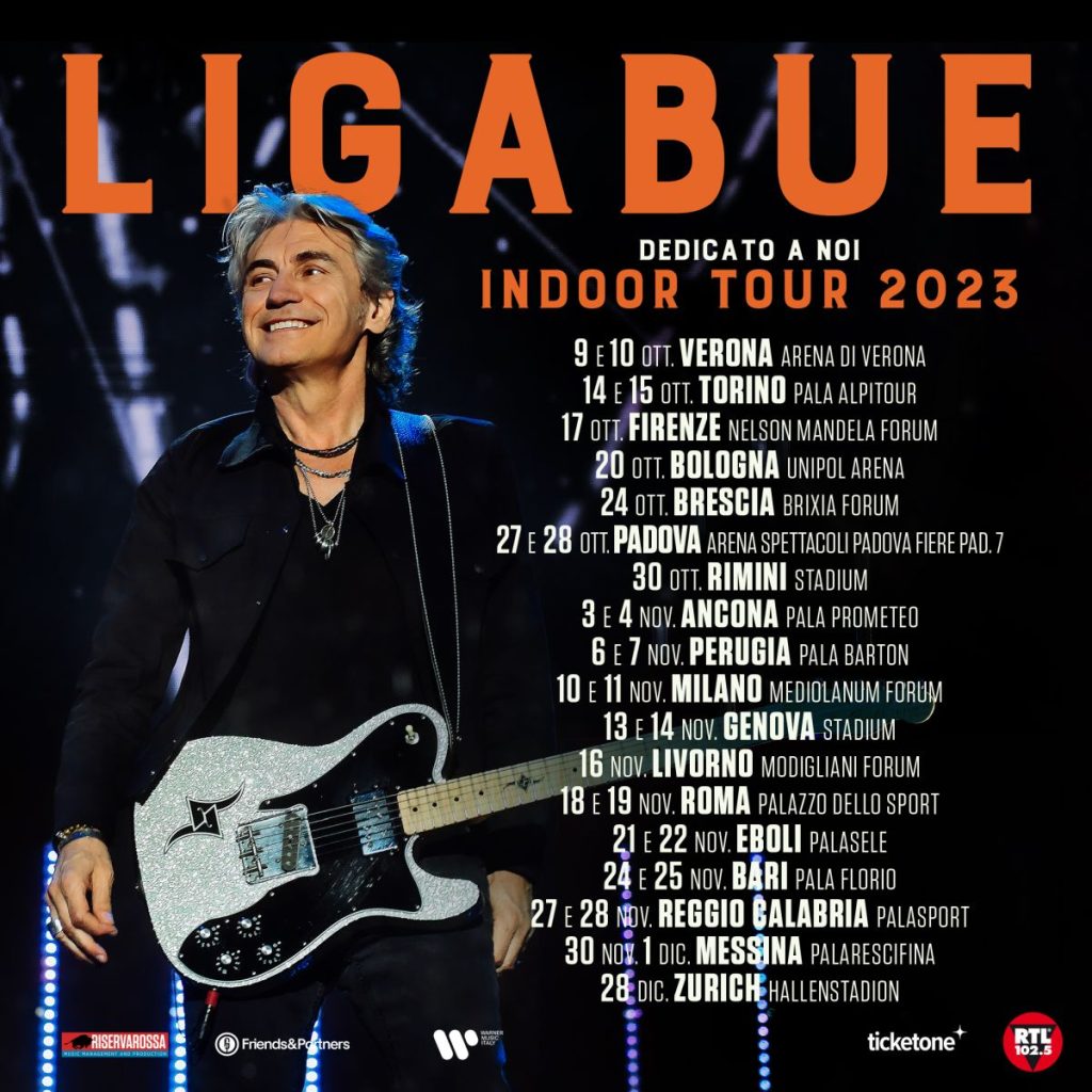 Dopo il successo delle prime due date all’Arena di Verona e delle prime dodici date indoor, il nuovo tour di LUCIANO LIGABUE prosegue fino a dicembre nei principali palasport.