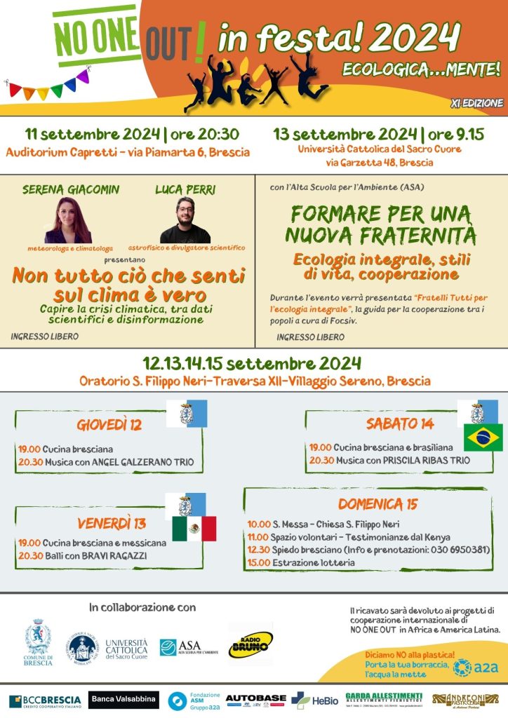 Brescia, 5 settembre 2024. Torna la festa di NO ONE OUT, che quest’anno giunge all’XI°
