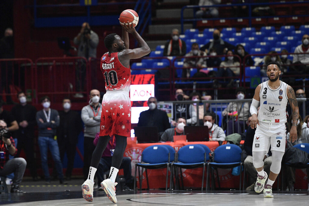 Olimpia: Kell 2, Melli 10, Grant 13, Rodriguez 11, Leoni ne, Ricci 0, Biligha 0, Hall 14, Baldasso ne, Alviti 0, Hines 4, Bentil 18. Coach Messina.
