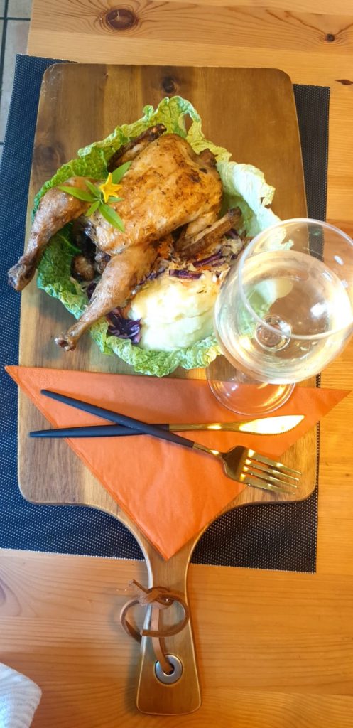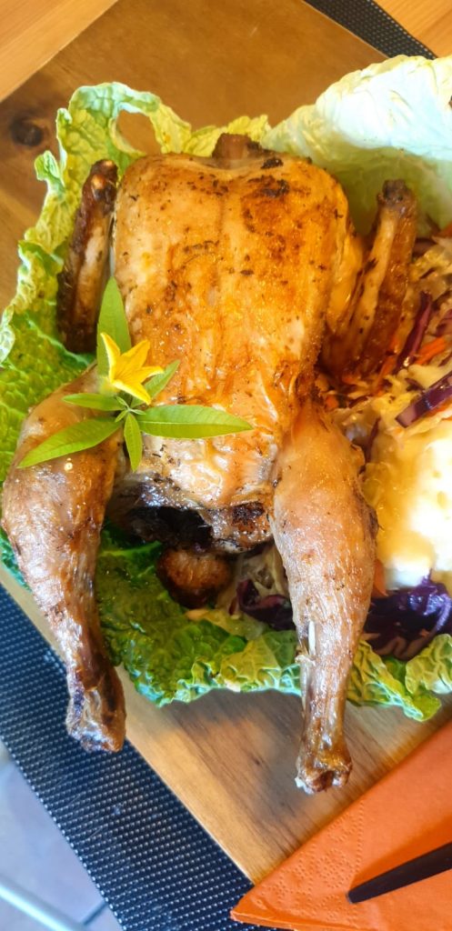 Infornate a 190°C per un’ora circa. Al termine della cottura servite il pollo irrorandolo con il sughetto di cottura.