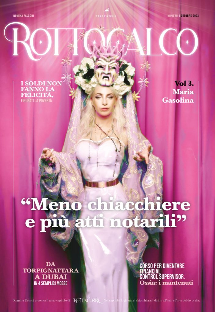 Dopo il grande successo della presentazione in anteprima al Lucca Comics & Games è disponibile “ROTTOCALCO Vol. 3” (Freak&Chic) di ROMINA FALCONI. Il libro, in edizione limitata e da collezione, sviluppa i temi del nuovo brano “MARIA GASOLINA” (Freak&Chic/ADA Music Italia – https://ada.lnk.to/mariagasolina) attraverso scritti firmati dalla stessa cantautrice, da psicologi, giornalisti e illustratori ed è disponibile sull’e-commerce ufficiale del progetto: https://rottincuore.com/shop/