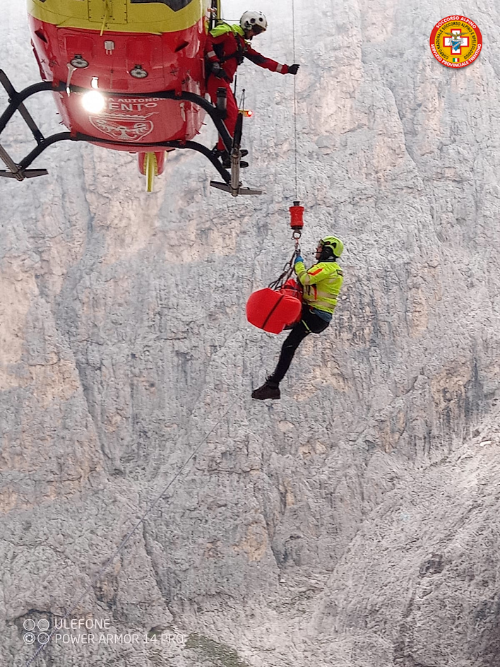 Volato sul luogo dell’incidente, l’elicottero ha sbarcato i due soccorritori e il Tecnico di elisoccorso. Successivamente, con una seconda rotazione, ha elitrasportato in quota l’equipe sanitaria, composta da medico e infermiere, e un ulteriore operatore della Stazione San Martino di Castrozza. La donna, sempre cosciente, è stata stabilizzata e imbarellata. Dopodiché, nonostante la persistenza delle nebbie, l’elicottero è riuscito a recuperare l’infortunata e tutti i soccorritori tramite diversi verricelli. Mentre i soccorritori sono stati portati a valle, la donna è stata trasferita all’ospedale Santa Chiara di Trento. L’intervento si è concluso intorno alle 16.45.