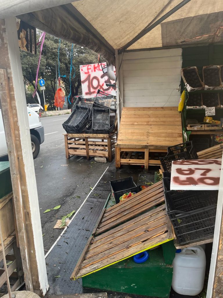 Le misurazioni effettuate dell’ingombro del banco hanno evidenziato una superficie maggiore di quella indicata nella concessione. Anche in questo caso, come in quello di ieri in Piazza Verdi, il posteggio si presentava dotato di strutture di tipo non immediatamente rimovibile, quali pedana rialzata e pareti in legno con scaffalature in legno fissate a tali pareti.
