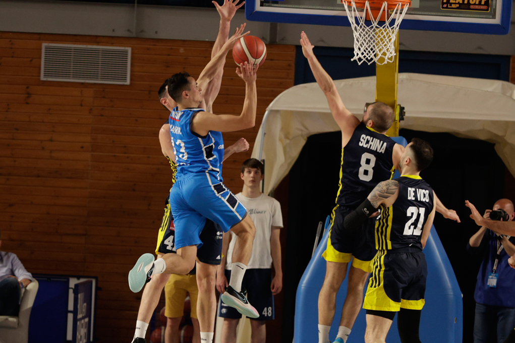 Marini non lascia nulla di intentato: una tripla e un recupero difensivo accendono il PalaFacchetti, poi Giuri segna il canestro del 49-56 (33′). Quando il team di Ciani ottiene terzo e quarto fallo (tecnico) dello stesso Marini, la partita torna definitivamente nelle mani dei gialloblù, che controllano gli ultimi minuti di gara con un margine di sicurezza. Alla fine è 52-67.