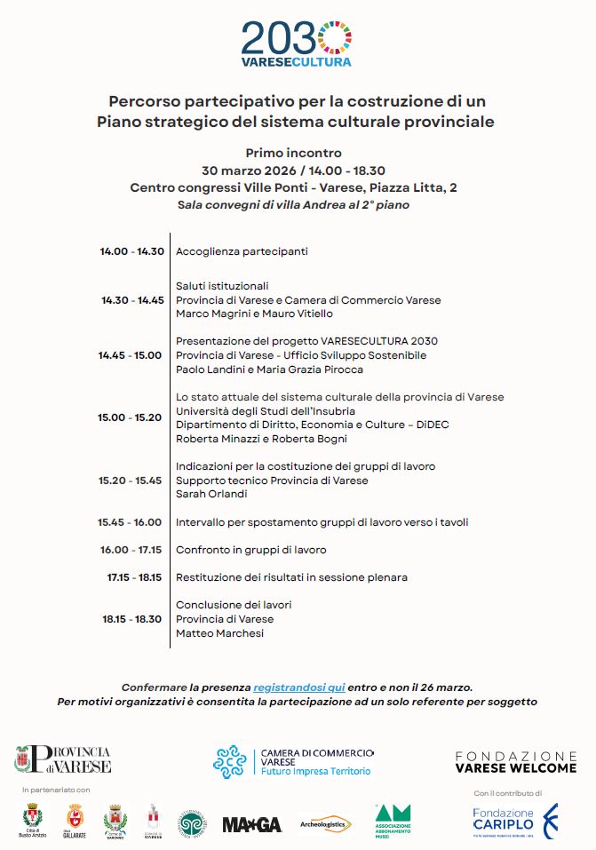 VARESE CULTURA 2030: PRIMO INCONTRO PER LA COSTRUZIONE DEL PIANO STRATEGICO DEL SISTEMA CULTURALE PROVINCIALE