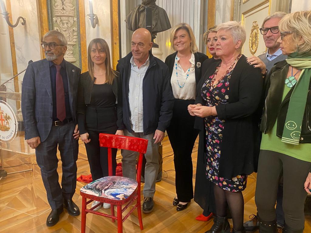 #Lasediarossa, simbolo della lotta alla violenza sulle donne, è arrivata oggi nel Salone di Rappresentanza di Palazzo Tursi, dove è stata installata nel corso di un evento al quale hanno partecipato Francesca Corso, assessore Pari Opportunità del Comune Irene Mercuri, consigliera di parità supplente di Regione, Alessandra Volpe, consigliera di parità di Città Metropolitana e Simona Firpopresidente FIDAPA BPW- sez. Genova.
